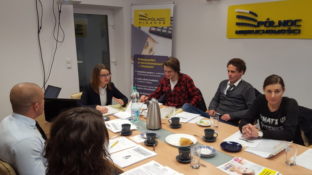 Nowi doradcy ds. nieruchomości z oddziałów PÓŁNOC Nieruchomości Wrocław II, PÓŁNOC Nieruchomości Gdańsk II, PÓŁNOC Nieruchomości Rzeszów oraz PÓŁNOC Nieruchomości Kraków III przez dwa dni poznawali standardy pracy i procedury obowiązujące w PÓŁNOC Nieruchomości.
