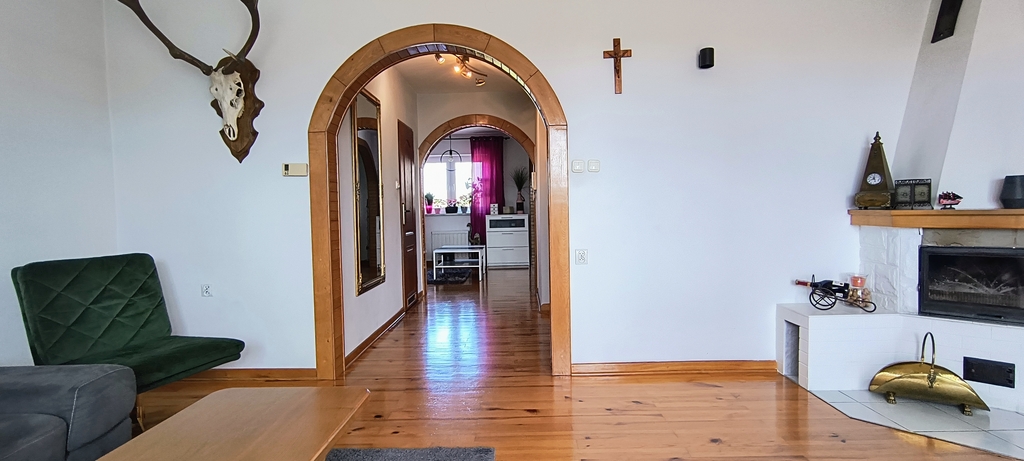 •    przestronny salon z kominkiem i wyjściem na balkon