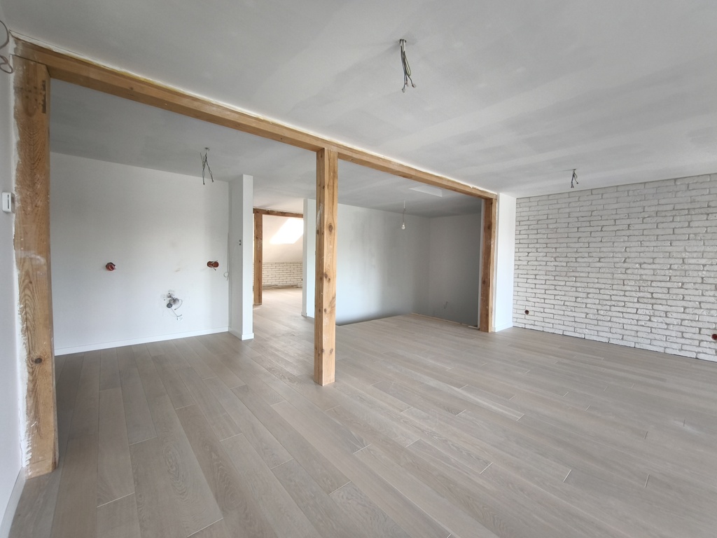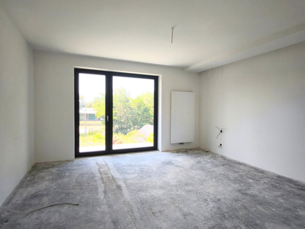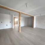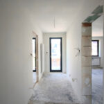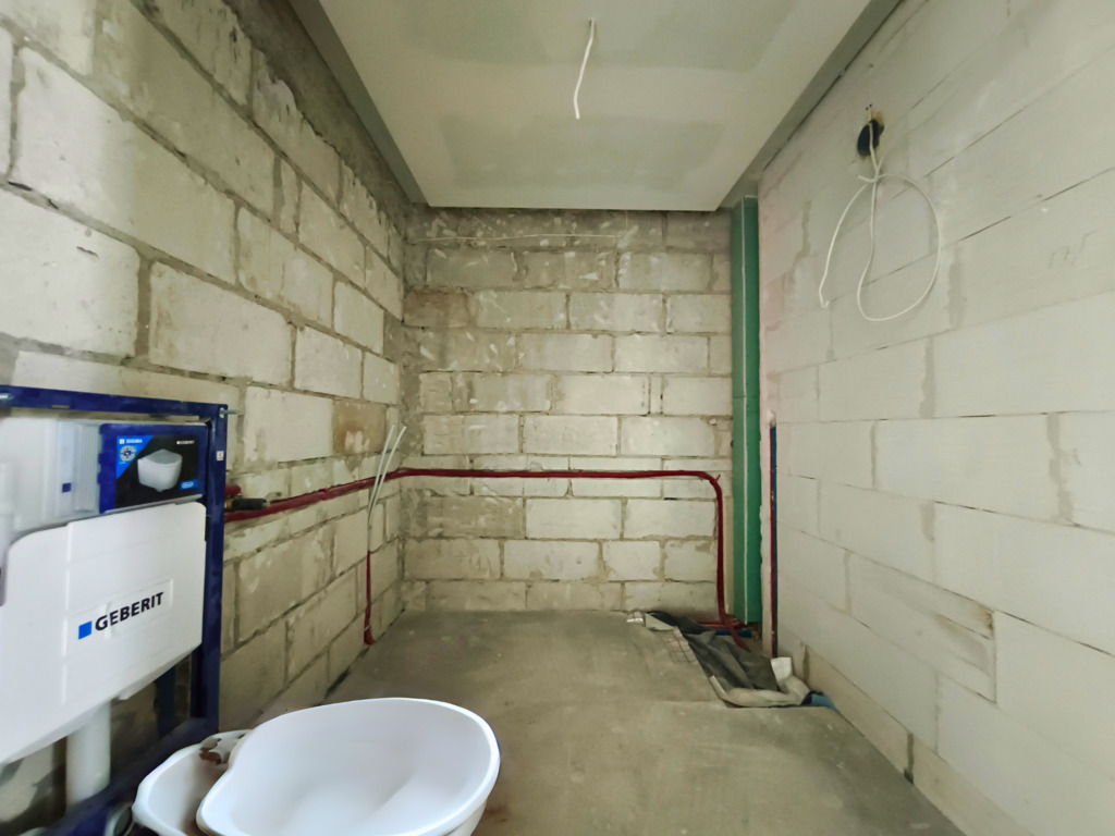 Zostały tu już wykonane wylewki na ogrzewaniu podłogowym, ściany pokryto gładzią.