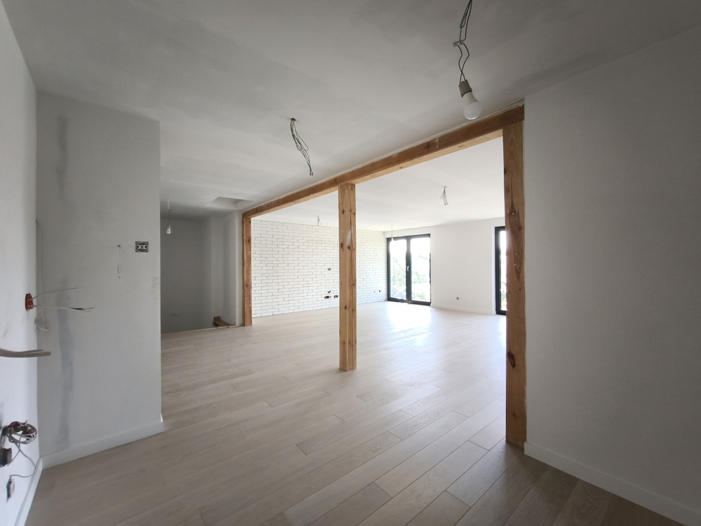 Mieści trzy niezależne pokoje – idealne na sypialnie lub biuro – oraz łazienkę (do wykończenia).