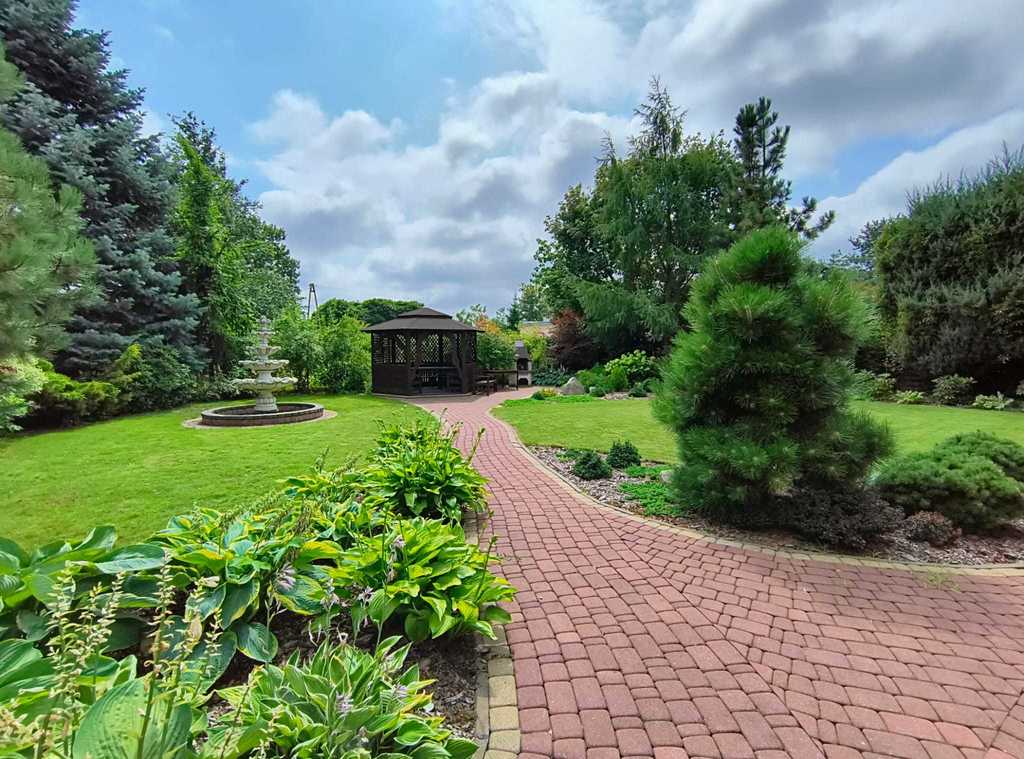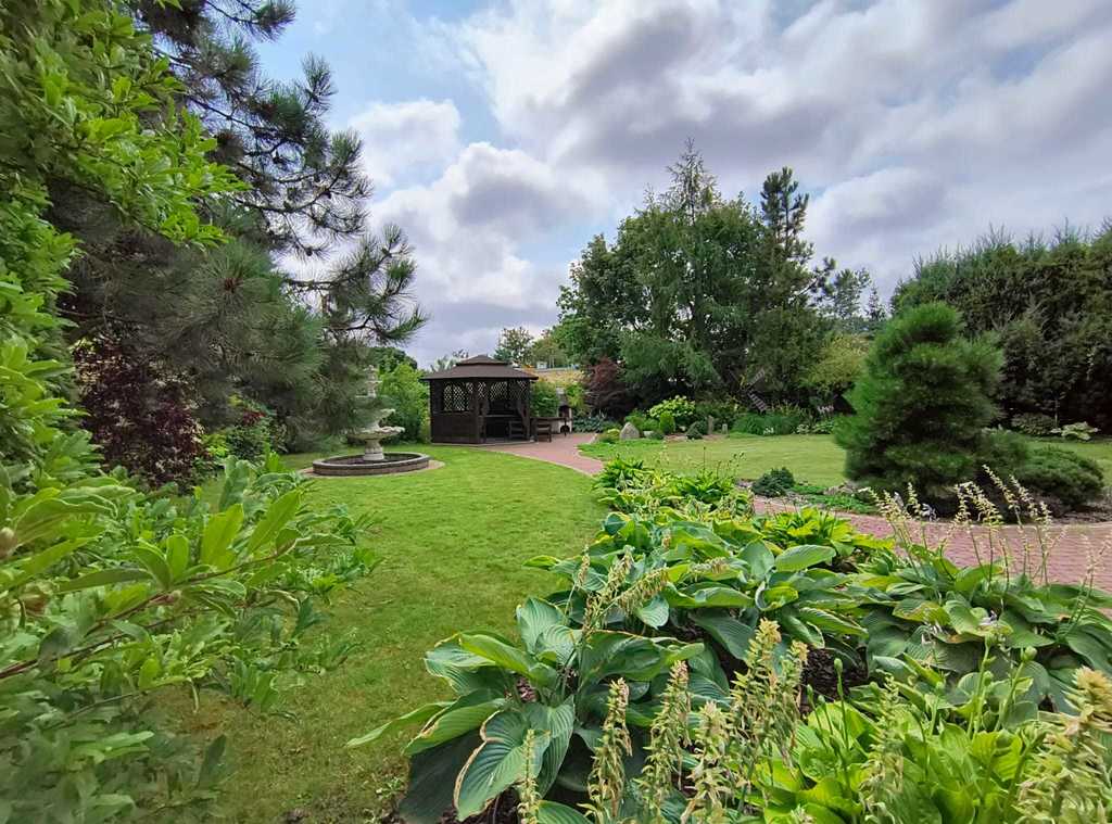 W ogrodzie znajduje się altana rekreacyjna oraz fontanna.