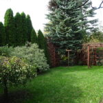 Poza tym niewielka wiata, drzewa, pergola oraz rośliny ozdobne.