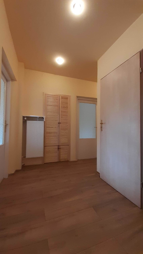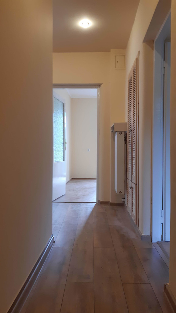 Podłogi w pokojach - parkiet, przedpokój - panele.