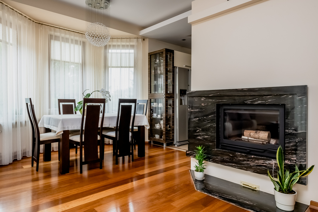- jadalnia harmonijnie połączona z nowoczesną kuchnią,