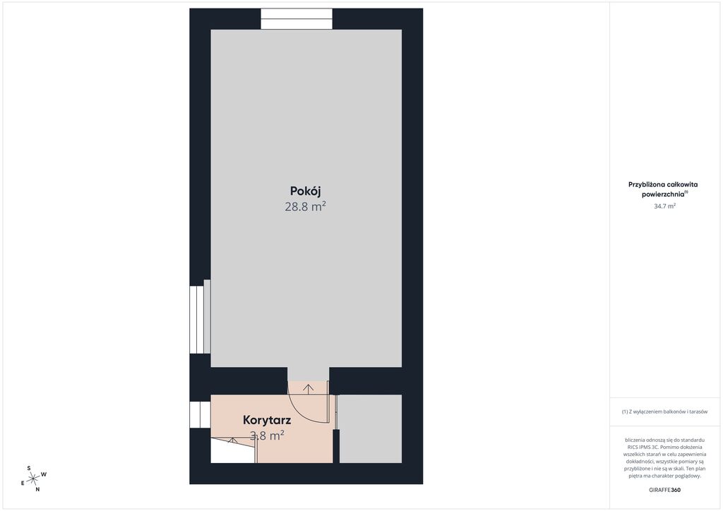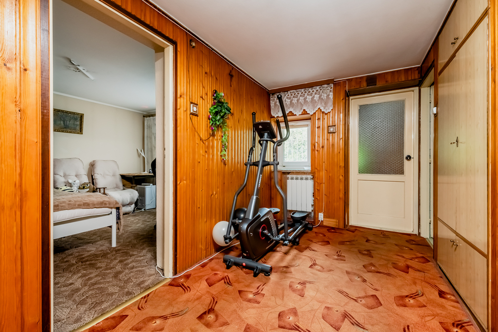 - Duży pokój 28,8 m2 – przestronne studio rekreacyjne lub biuro oraz schowek/szafa.