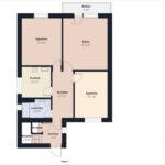 - Sypialnie: dwie sypialnie 16,4 m2 oraz 13,7 m2.