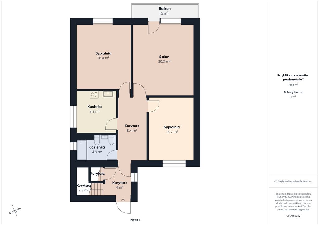 - Salon 20,3 m2 z wyjściem na balkon 5 m2.