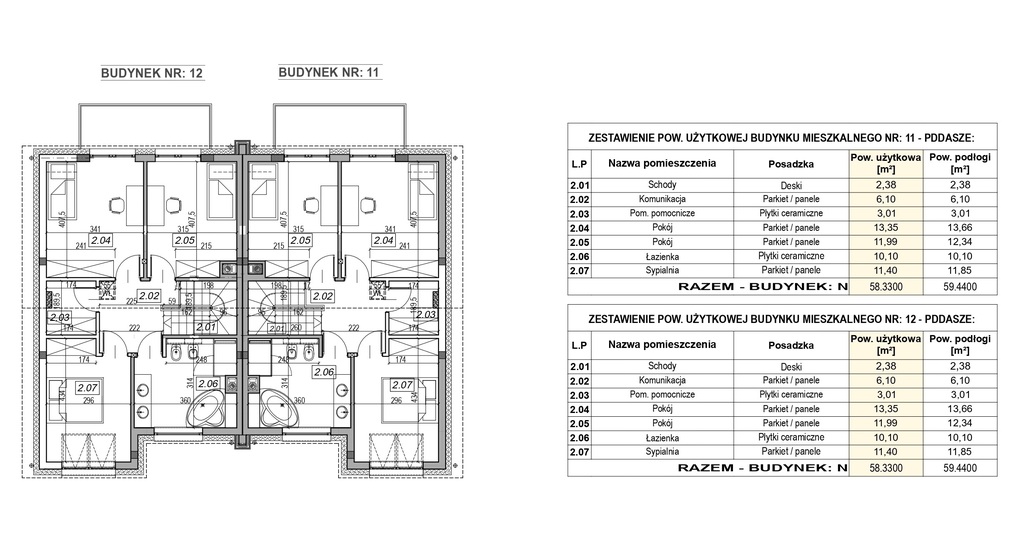 *konstrukcja dachu - tradycyjna więźba drewniana; pokrycie dachu - dachówka betonowa
