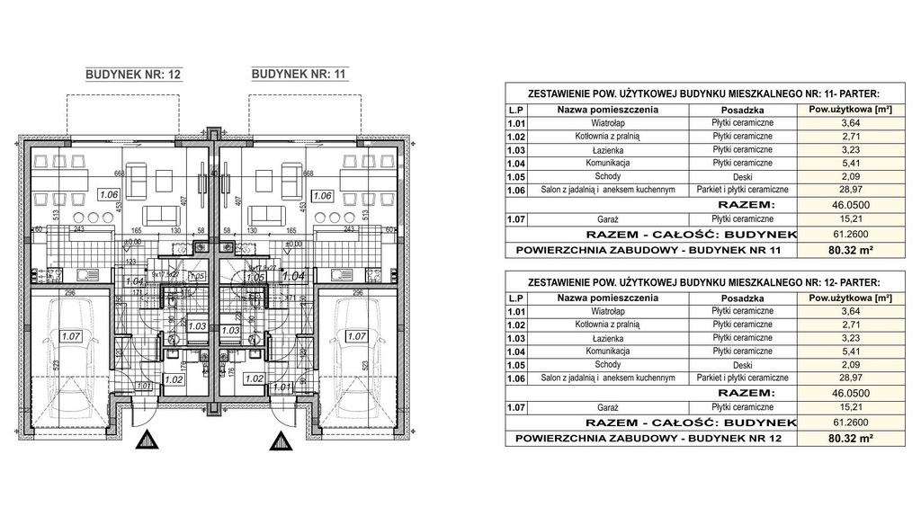 PARTER: salon z aneksem kuchennym, łazienka z miejscem na prysznic, pralnia/pomieszczenie gospodarcze, garaż (w bryle budynku)