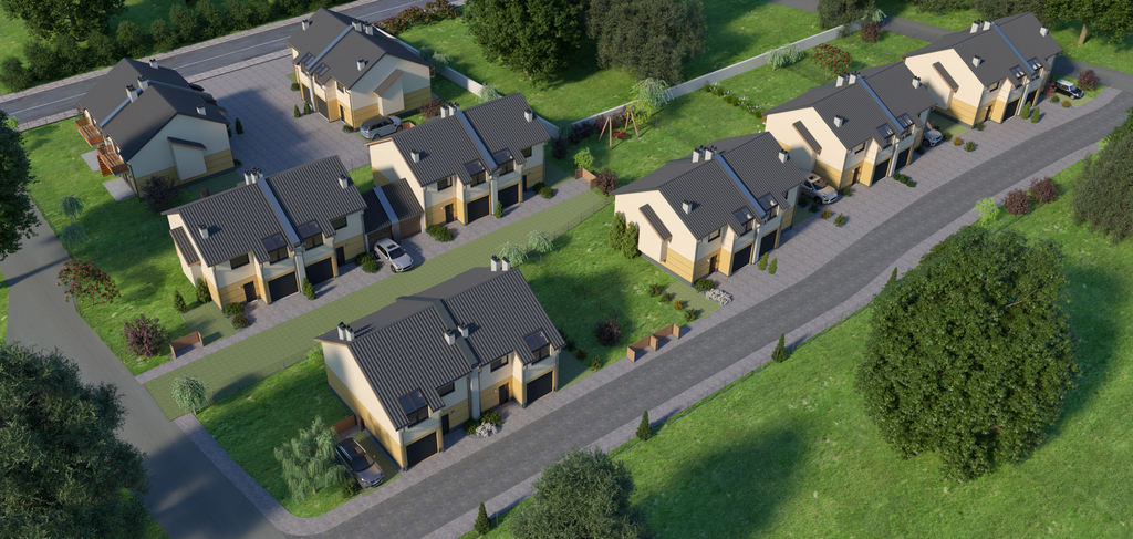 Domy w zabudowie bliźniaczej z działkami ok. 300 m2.