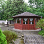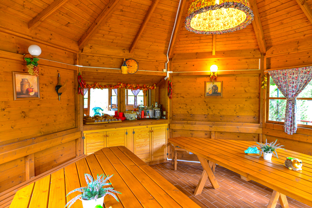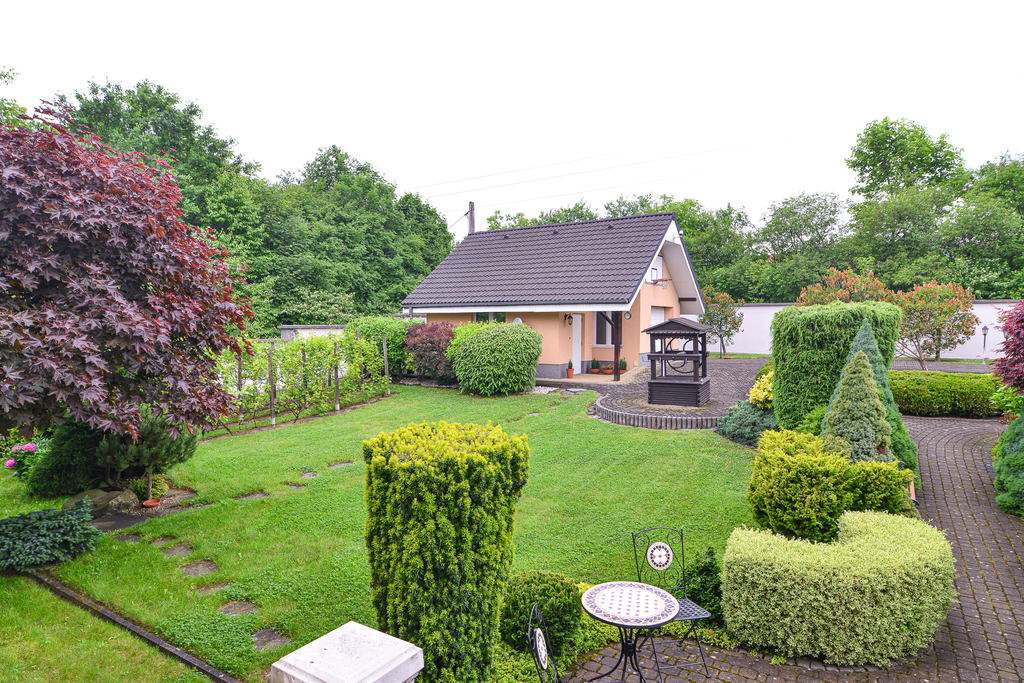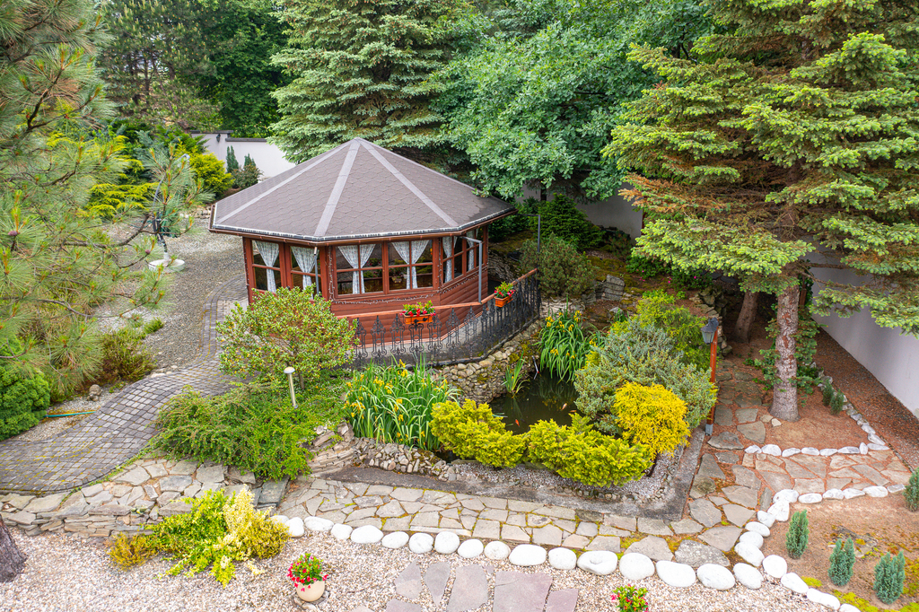 Przepięknie zaaranżowany ogród (o powierzchni 4366m2), ze starodrzewem i ozdobnymi krzewami, które kwitną od wczesnej wiosny do późnej jesieni. W ogrodzie zamknięta duża altana przeznaczona do długiego biesiadowania. Znajdziesz też tu własną wędzarnię, więc jeśli wędzisz to docenisz jak profesjonalnie jest zrobiona.