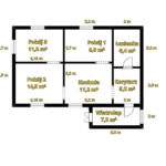 Dom wybudowany w 1950 roku. Jego powierzchnia użytkowa to 70 . Składa się on z 7 pomieszczeń: