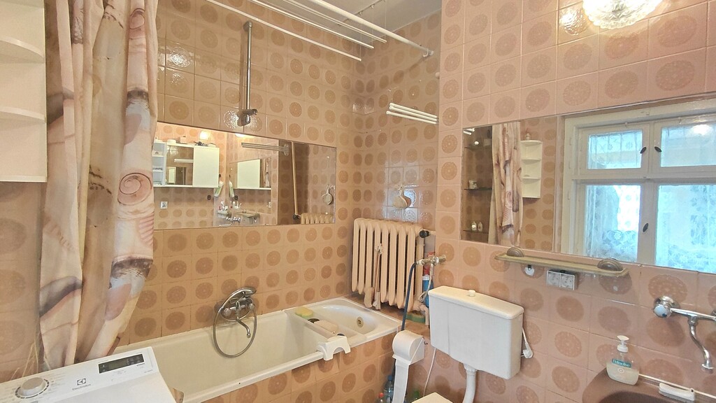 - łazienka z wanną i oknem