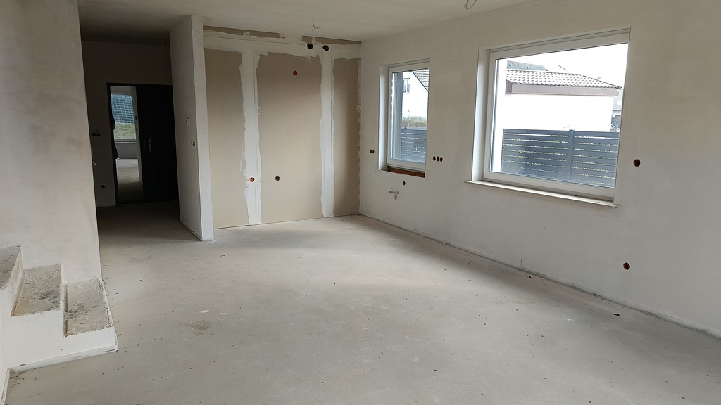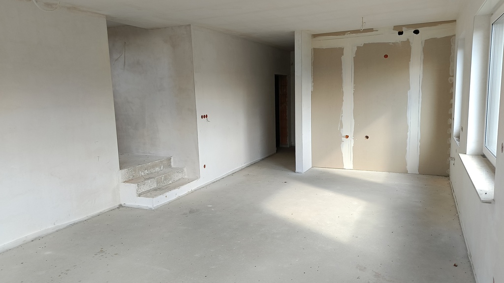 - Na podłogach wylewka betonowa gotowa do położenia na niej płytek lub paneli;