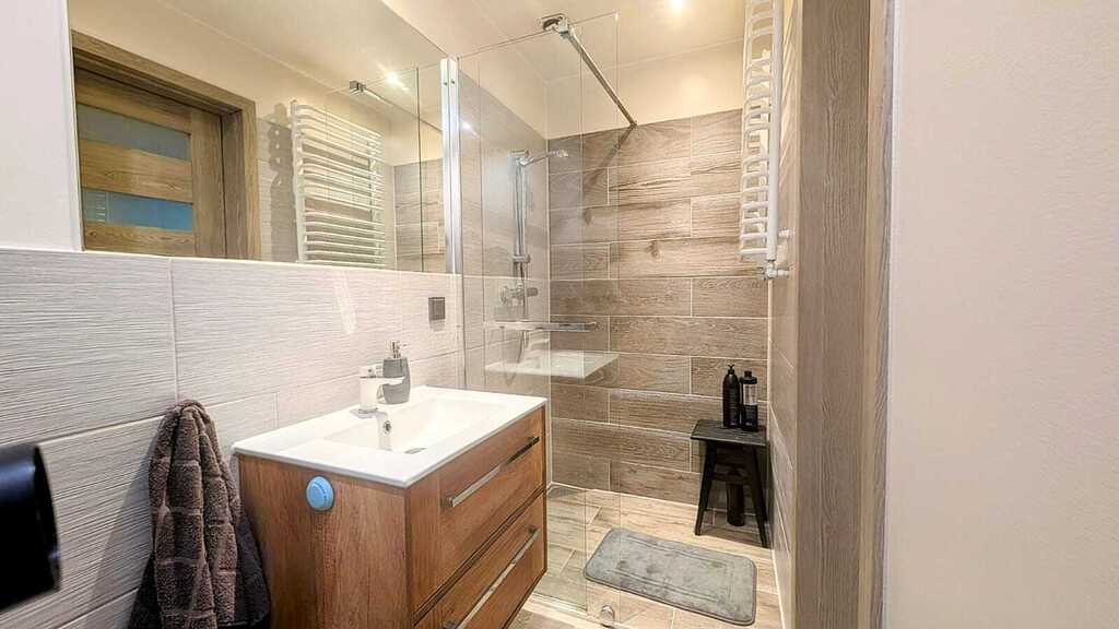 Wyposażenie: kuchnia w pełni umeblowana i wyposażona w sprzęt AGD, łazienka z wanną oraz łazienka z prysznicem