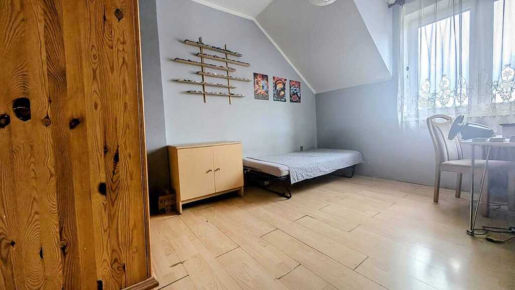 Ilość pomieszczeń: przestronny salon połączony z garderobą oraz wyjściem na taras, 3 sypialnie, 2 łazienki, duża kuchnia z jadalnią, dodatkowo strych do własnej aranżacji np. biuro, pokój gościnny lub siłownię