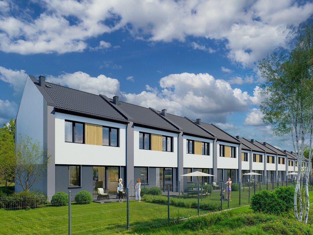 Część domów jest już zarezerwowana – dostępność ograniczona. Aktualna oferta obejmuje wybrane domy skrajne oraz środkowe.