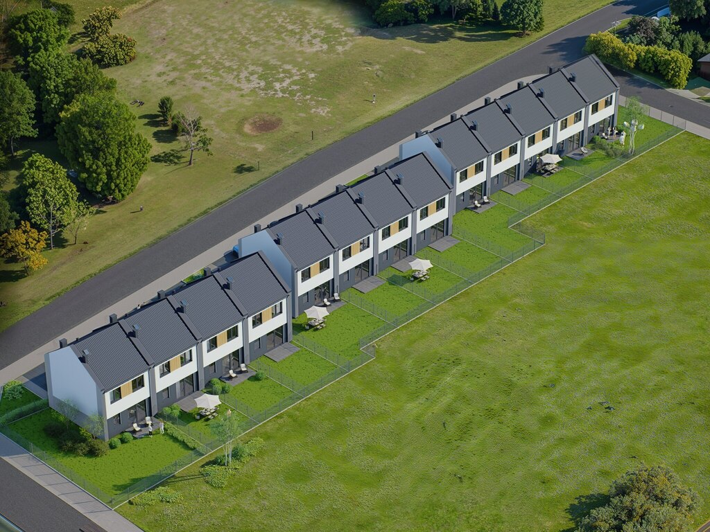 - wydzielona działka gruntu dla każdego domu,
