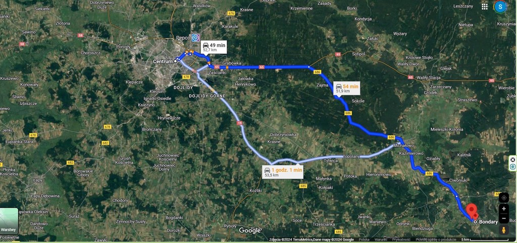 - do Białegostoku – 50 km.( 50 min. samochodem)