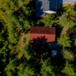 Dach pokryty jest blachodachówką,  elewacja wykończona szalówką.
