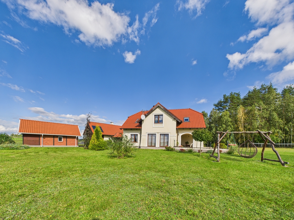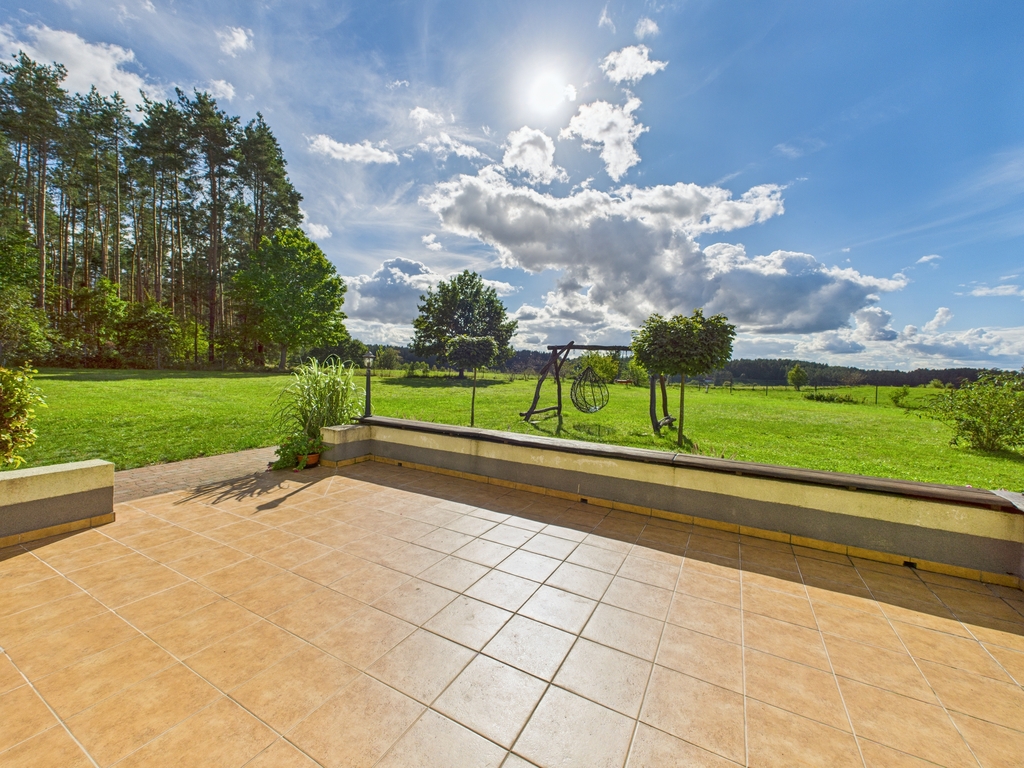 Nieruchomość znajduje się na wzniesieniu z pięknym widokiem – na las, łąki oraz wieś w oddali. Idealne miejsce dla osób ceniących ciszę i prywatność.