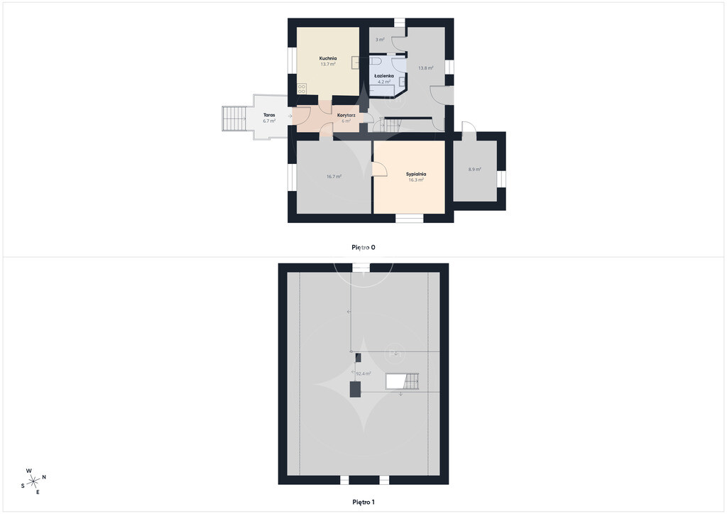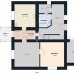Na parterze znajdują się dwa pokoje oraz kuchnia, poddasze do adaptacji.