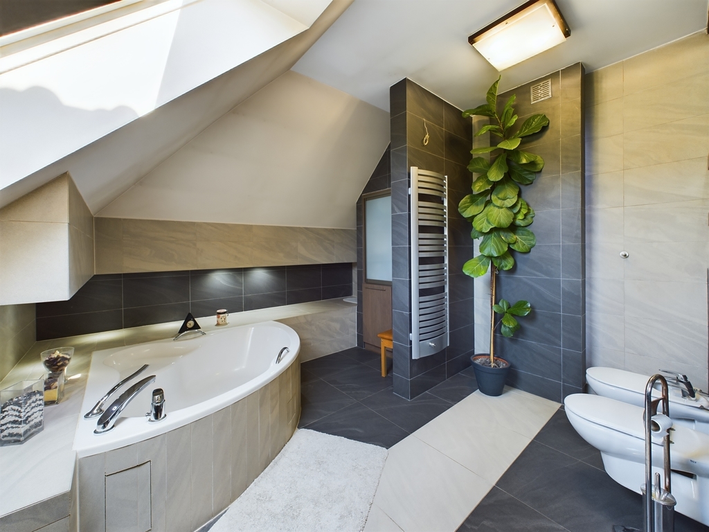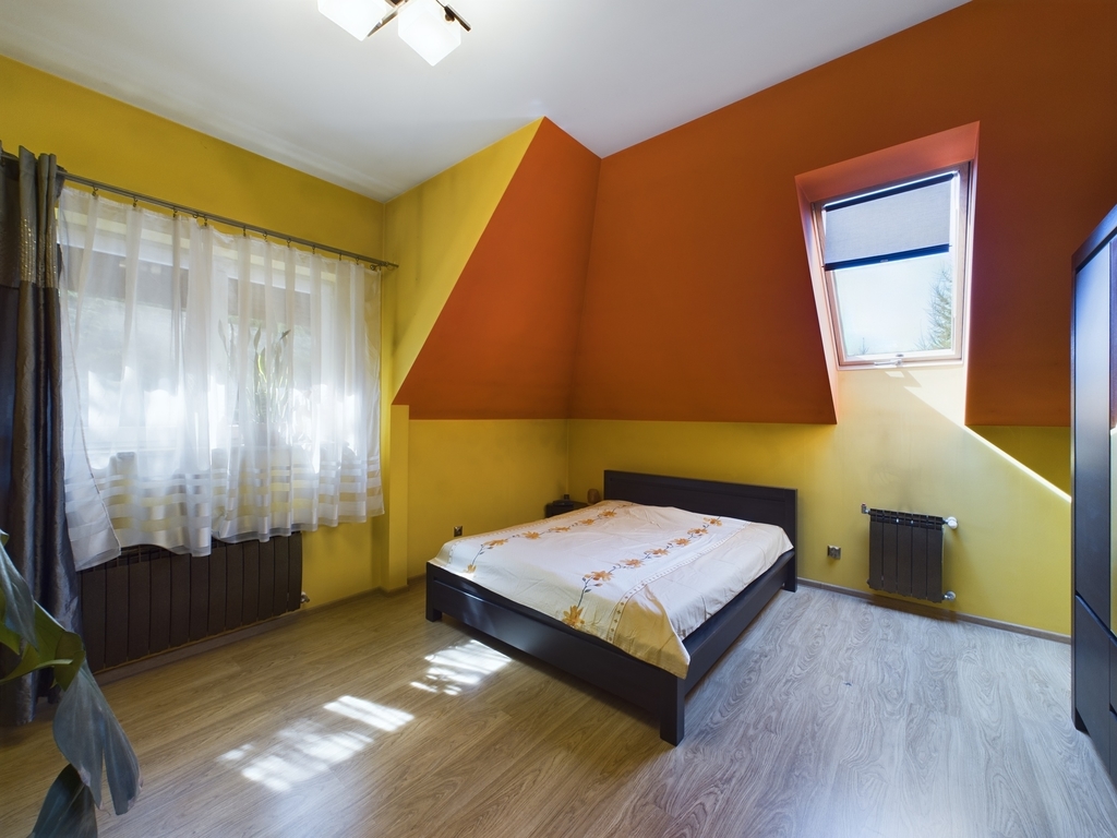 - Piętro: 3 komfortowe sypialnie, garderoba, łazienka z wanną oraz duży pokój o wyjątkowym potencjale – idealny na domową pracownię, pokój zabaw, siłownię, przestrzeń do pracy zdalnej lub prywatne kino domowe