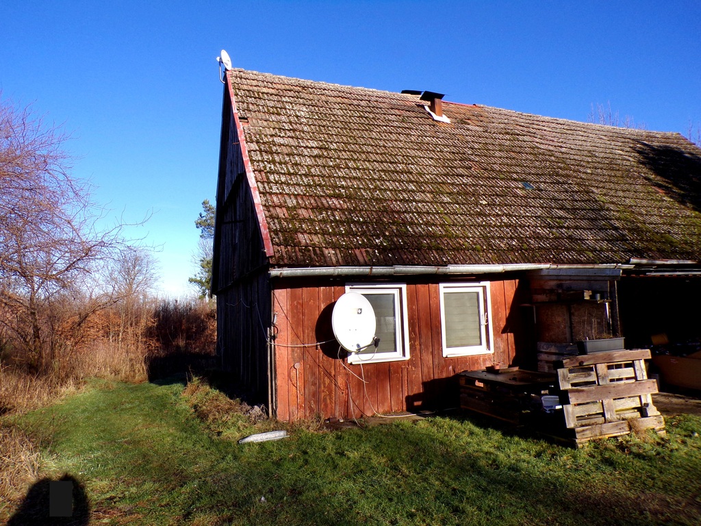 1739 m2, teren działki ogrodzony z brama wjazdową. Dom '' z duszą'' zbudowany metodą typu mur pruski - konstrukcja z drewnianej ramy wypełniona czerwoną cegłą oraz z wypełnieniem gliną z siateczki ze słomy. Część wykonana z cegieł została pokryta tynkiem oraz pomalowana na biało co wyglądem przypomina szachulec oraz częściowo obita została deskami. Na działce dodatkowo budynek gospodarczy o powierzchni 69 m2 zbudowany także metodą tradycyjną -tz. szuchulec.