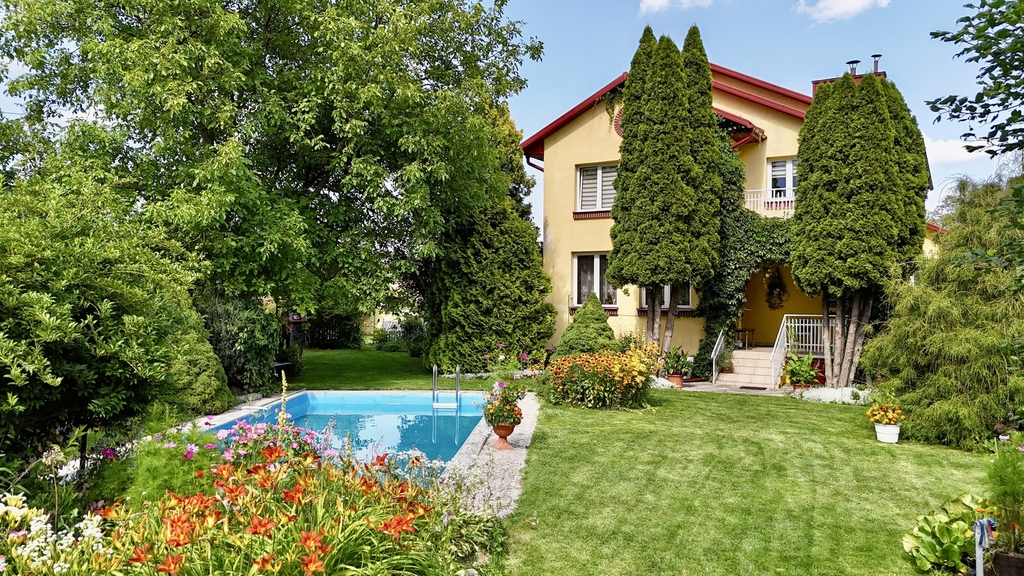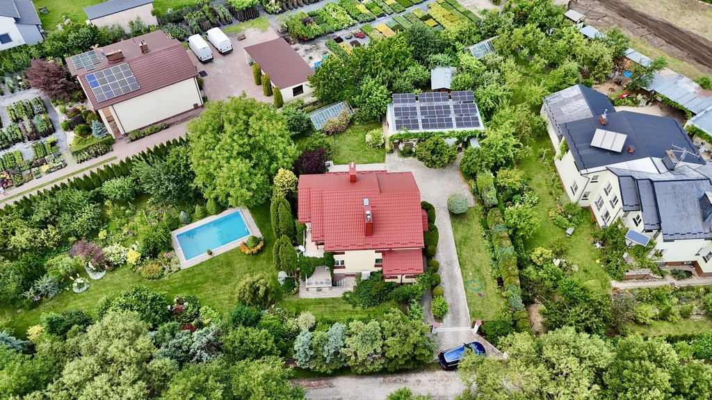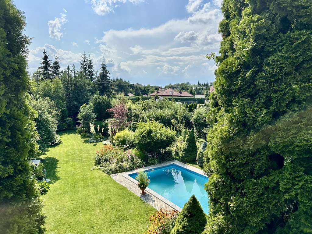 • Działka: 20 arów – pięknie zagospodarowany ogród z basenem