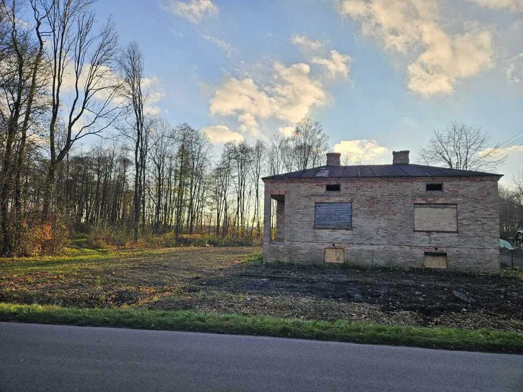 - Zabudowania: dom murowany z cegły o powierzchni zabudowy około 110 m², do kapitalnego remontu lub wyburzenia