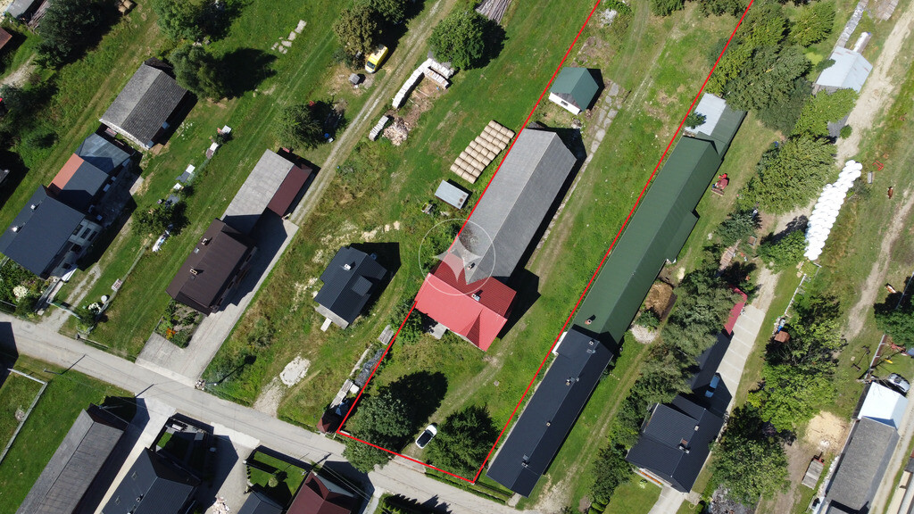 Na działce zlokalizowane są budynki gospodarcze (stara stajnia, stodoła, garaż) o powierzchni około 280m2 oraz dom o powierzchni 100m2 w podstawie.