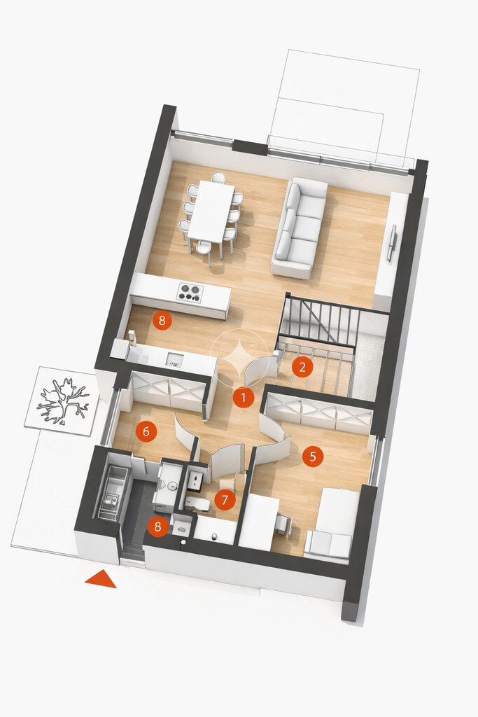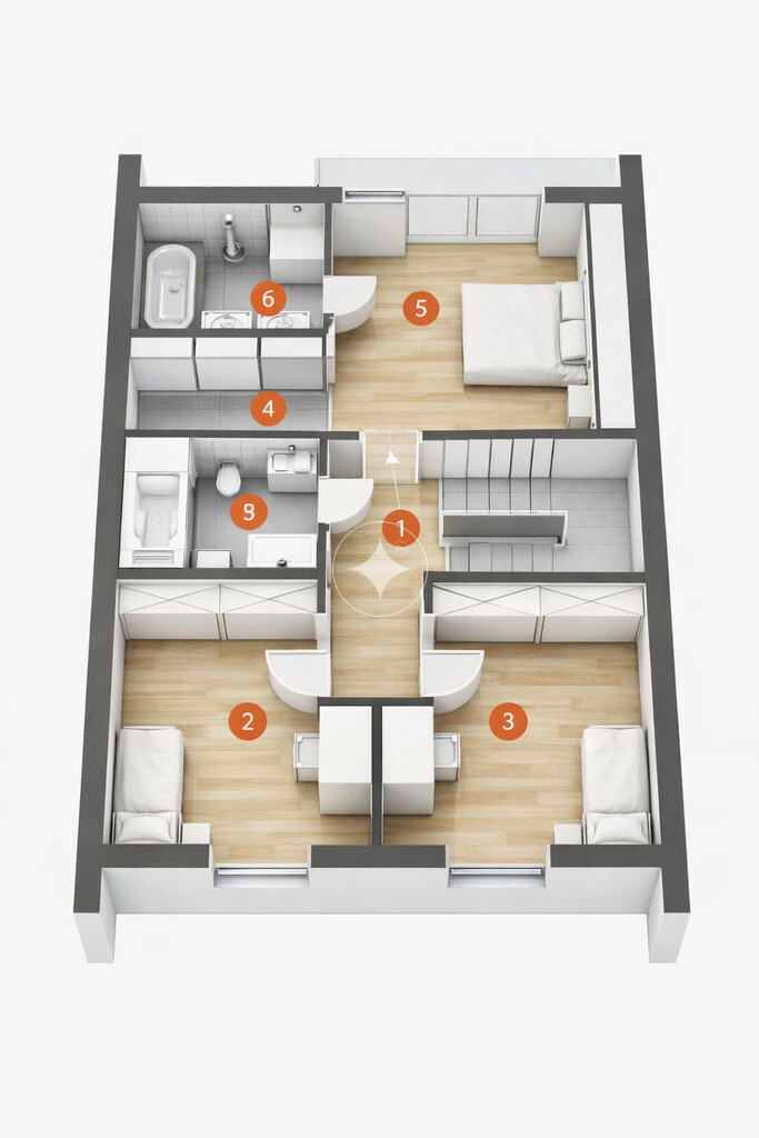 Przedstawione wizualizacje i grafiki mają charakter wyłącznie poglądowy i stanowią wyłącznie materiał pomocniczy, ułatwiający zorientowanie się w ogólnym wyglądzie oferowanej nieruchomości.