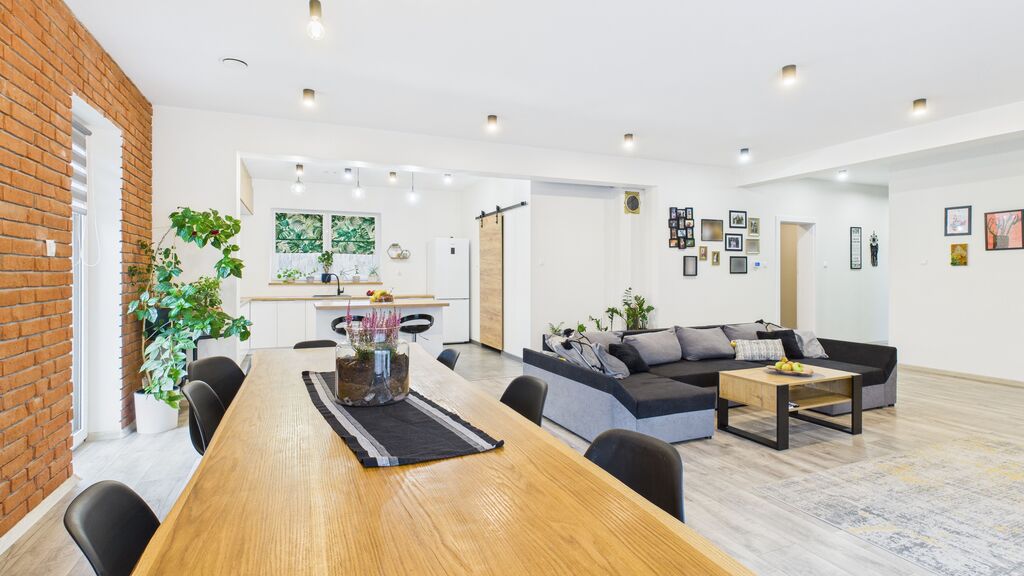 : - przestronny salon z jadalnią i wyjściem na taras i ogród