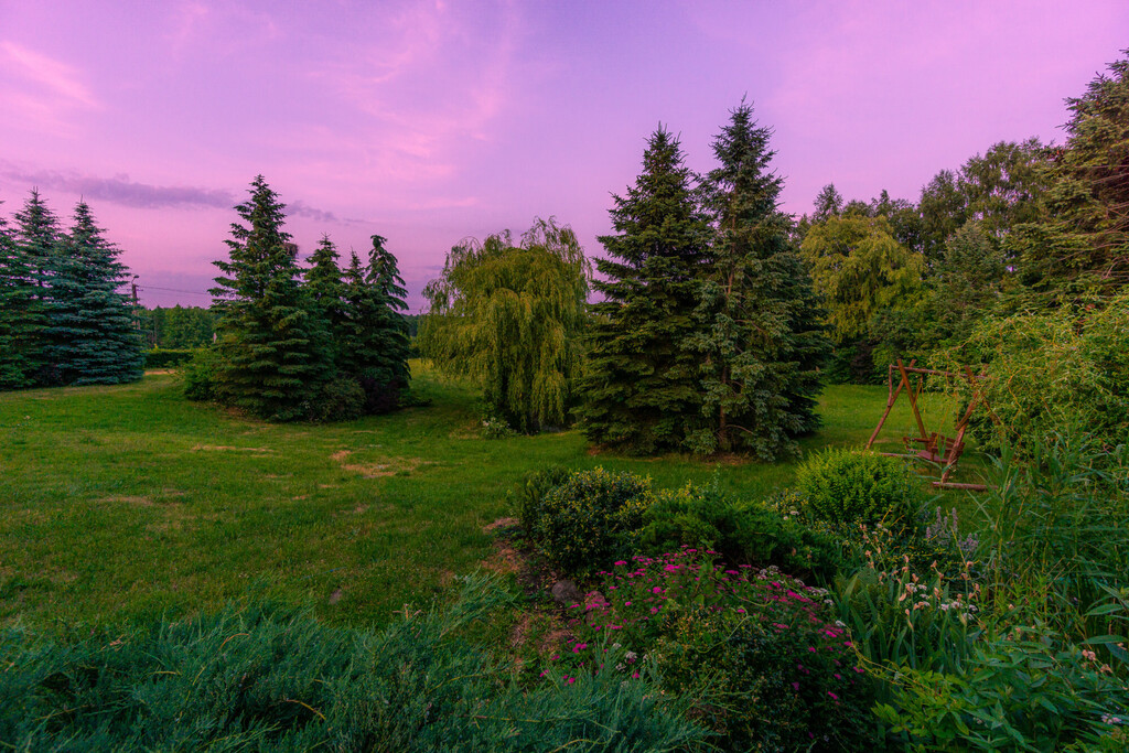- zagospodarowany ogród z oczkiem wodnym, miejscem na ognisko, wędzarnią z suszarnią, niewielkim placem zabaw, parkingiem - tereny rekreacyjne - duża łąka, przydomowy warzywnik, bujny drzewostan,