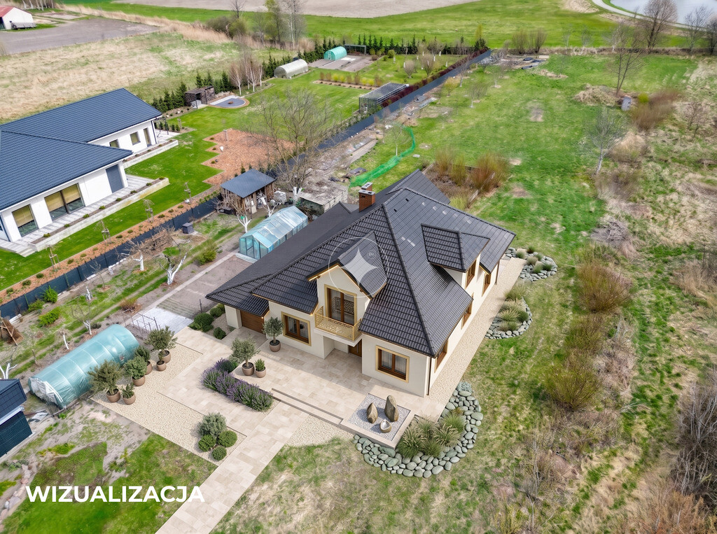 - Z okien domu widać piękny staw i zabytkowy pałac.