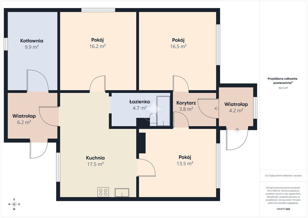 - 3 pokoje (16,5 m2, 16,2 m2, 13,5 m2)
