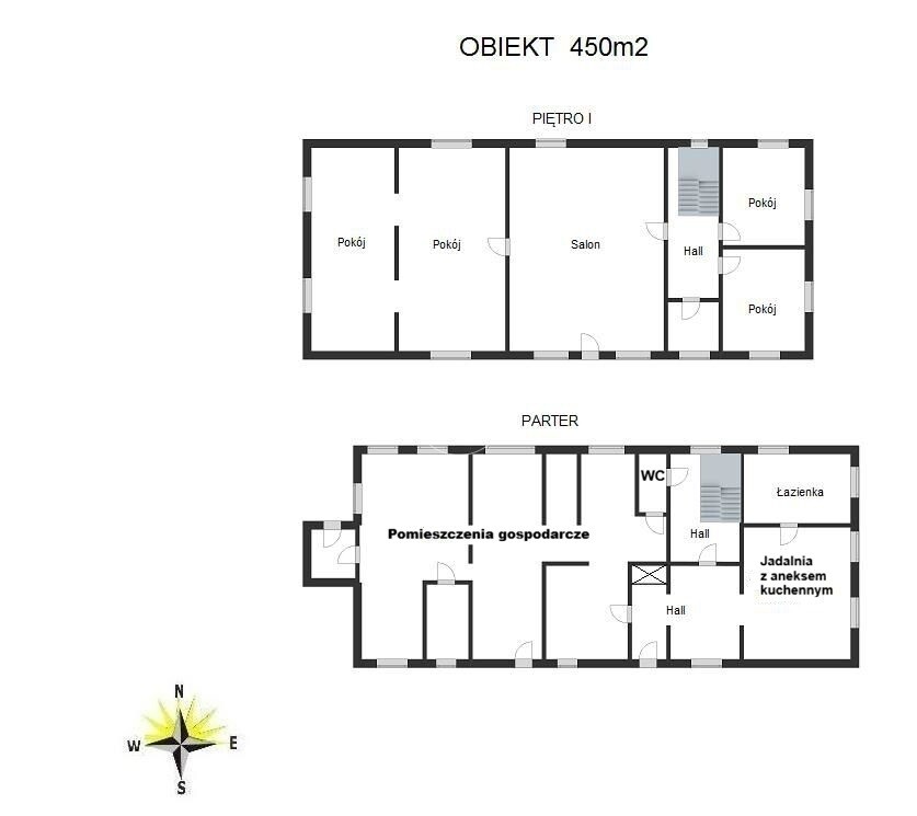 Dom jednopiętrowy o powierzchni 450 m2 składa się:
