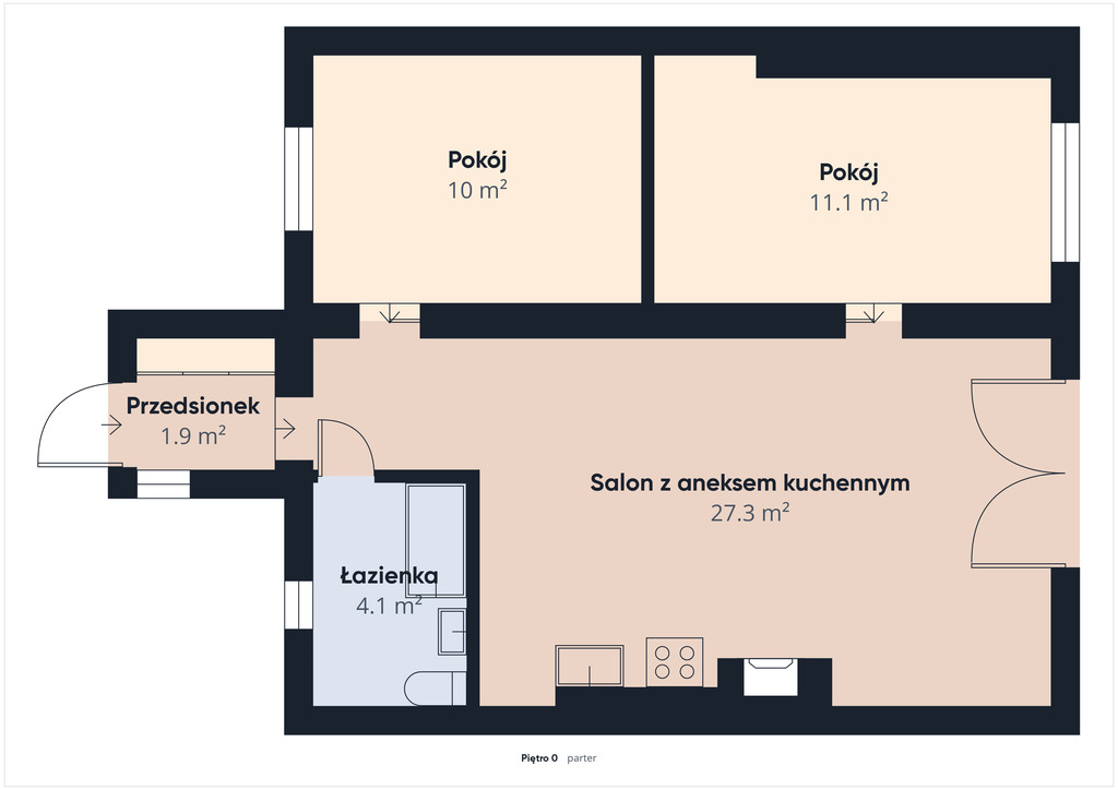 • 2 oddzielne pokoje: 11 m² i 10 m²