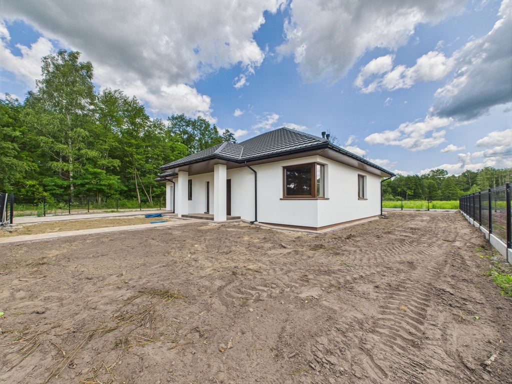 Prezentowany dom to nowoczesna konstrukcja parterowa o powierzchni 128,45 m2 sprzedawana w stanie surowym zamkniętym, co otwiera ogromne możliwości aranżacyjne, pozwalając na dostosowanie przestrzeni do potrzeb i gustów przyszłych mieszkańców.