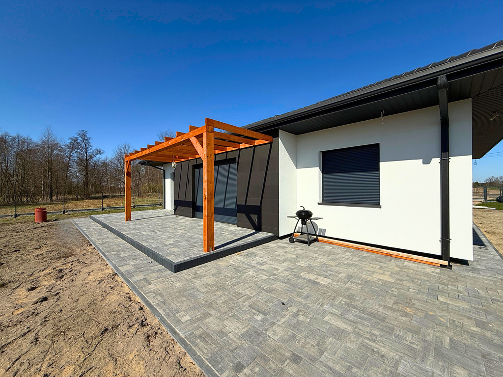 Parterowy dom pasywny o powierzchni 113 m², posadowiony na