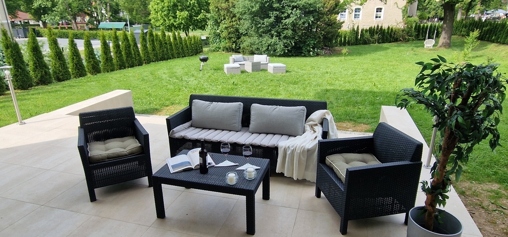 jako obiekt uzdrowiskowy z pięknym ogrodem, na który wychodzi się przez duży taras.