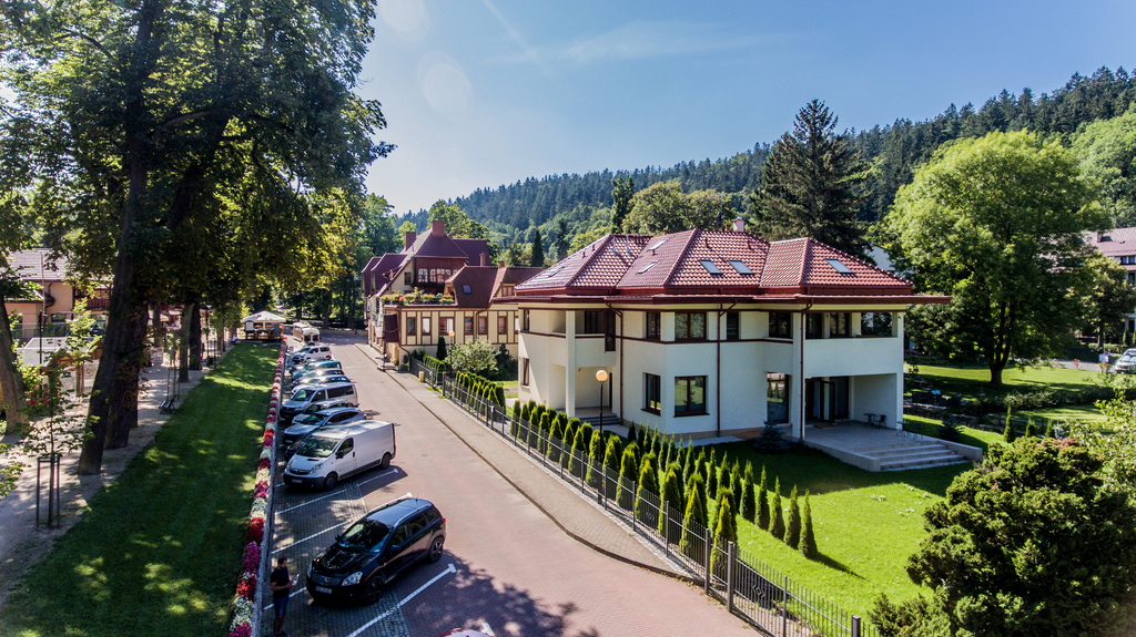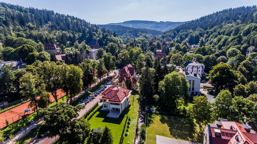 na działce o powierzchni 2200m2 w samym sercu uzdrowiska Duszniki Zdrój.