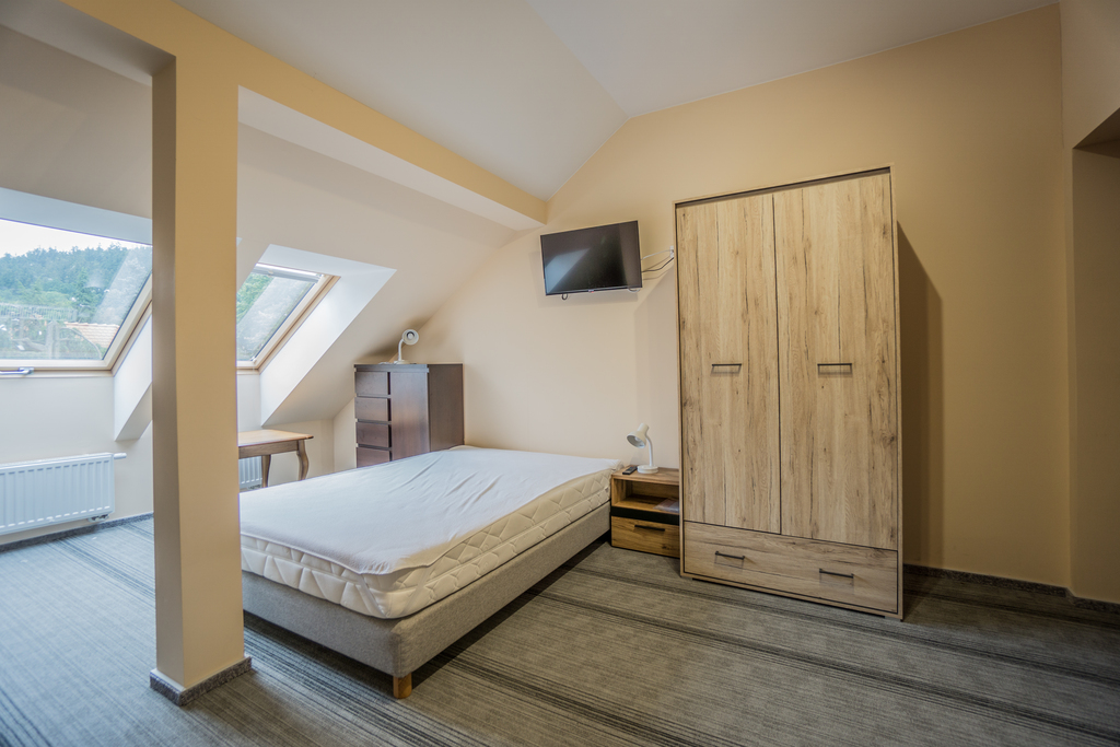 Są pokoje dla gości oraz osobny apartament i zaplecze usługowe.