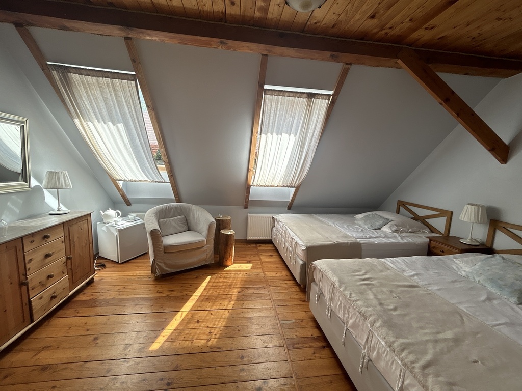 Obecnie mamy tutaj 10 miejsce noclegowych ale może ich być 14 plus apartament 150m2, który komfortowo pomieści 6 osób. Założenia są aby goście czuli się komfortowo i mieli poczucie wolności i przestrzeni.