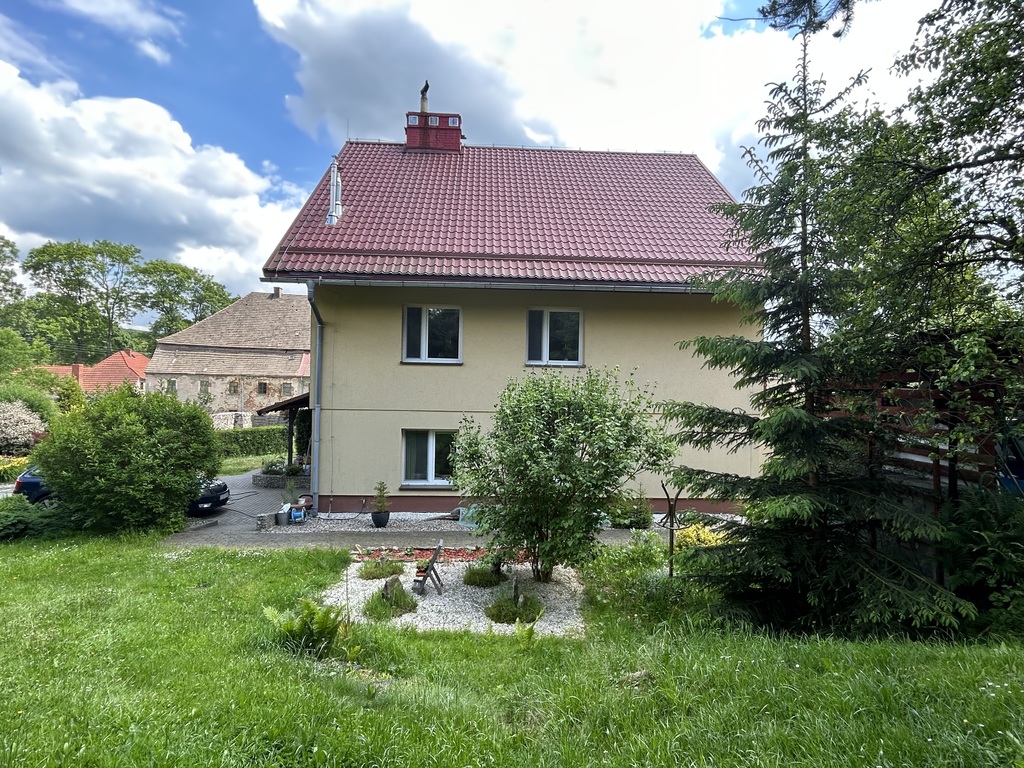 Dom położony na dużej działce bo w sumie ponad 3300 m2 z przebiegającym przez nią malutkim strumieniem. Nieruchomość o pow. 320m2 . Położenie w centralnej części miejscowości w bezpośredniej okolicy, przychodnia, sklep, Straż Pożarna czy przystanek autobusowy, do Jeleniej Góry 4 km, lokalizacja w okolicy drogi łączącej Legnicę z Jelenią Górą.
