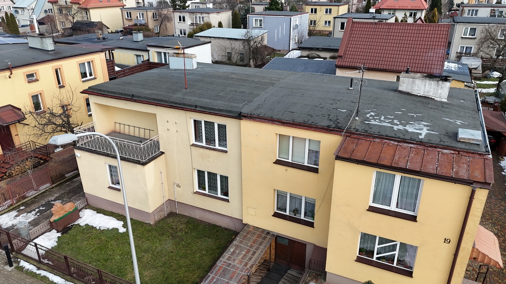 Nieruchomość zlokalizowana jest na ładnie zagospodarowanej działce w kształcie prostokąta o powierzchni 397m2 przy ulicy Sienkiewicza, w sąsiedztwie domów jednorodzinnych oraz sklepu z przetwórstwem mięsnym, w którym można kupić świeżutkie i pyszne smakołyki.