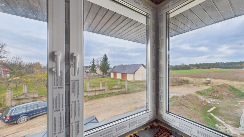 Budynek w stanie surowym zamkniętym, zbudowany z  cegły kratówki, docieplony styropianem 15 cm, co gwarantuje nowoczesność i komfort.