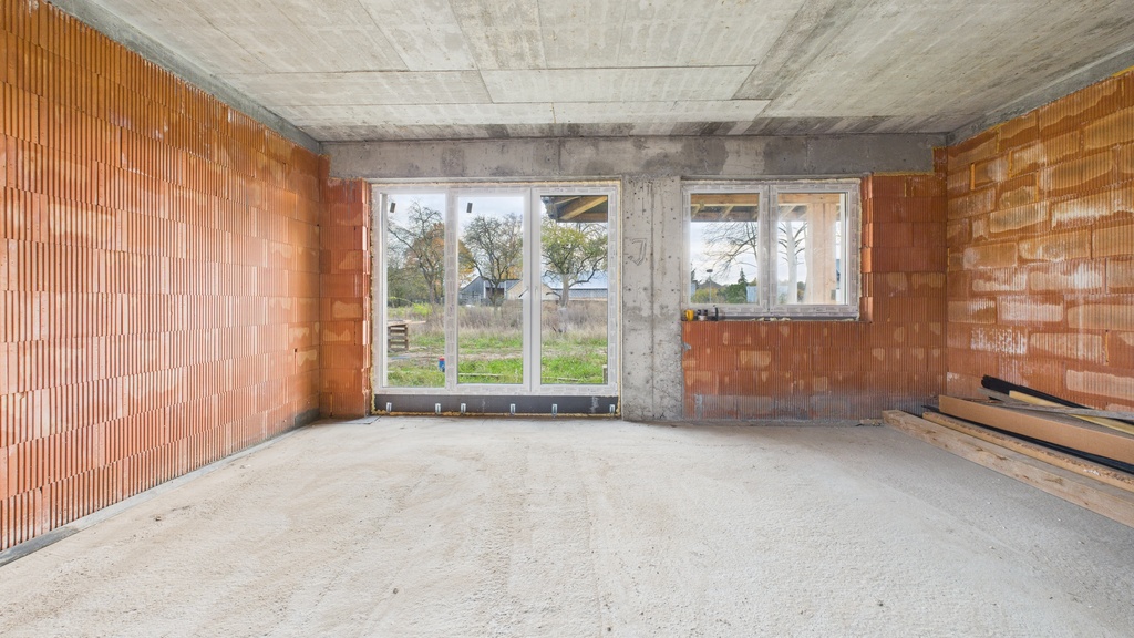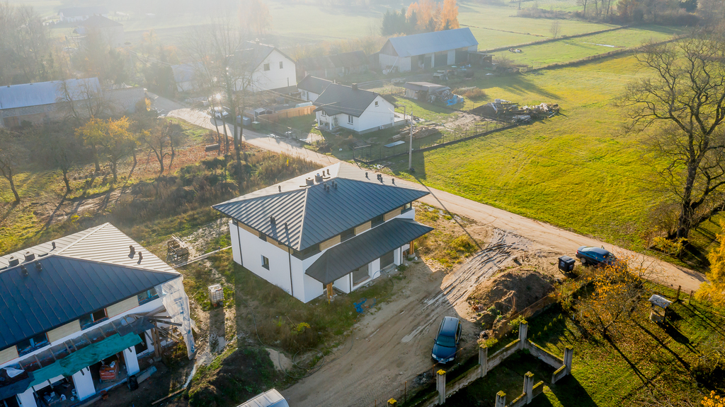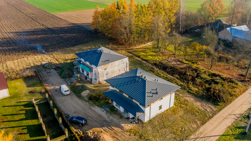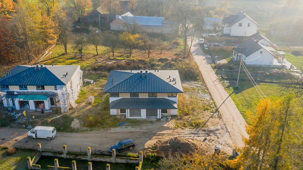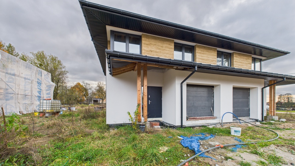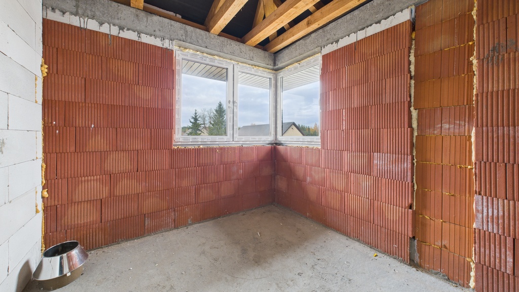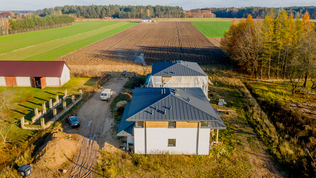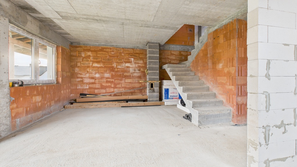 Budynek w stanie surowym zamkniętym, zbudowany z cegły kratówki, docieplony styropianem 15 cm, co gwarantuje nowoczesność i komfort.