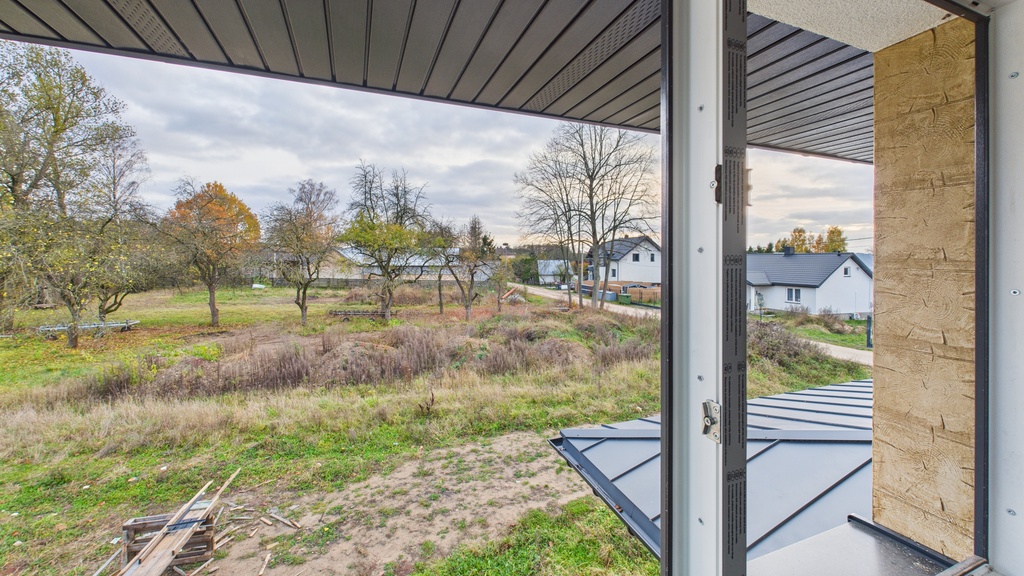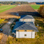 Dach wykonany z blachy płaskiej zapewnia trwałość i ochronę przed warunkami atmosferycznymi.