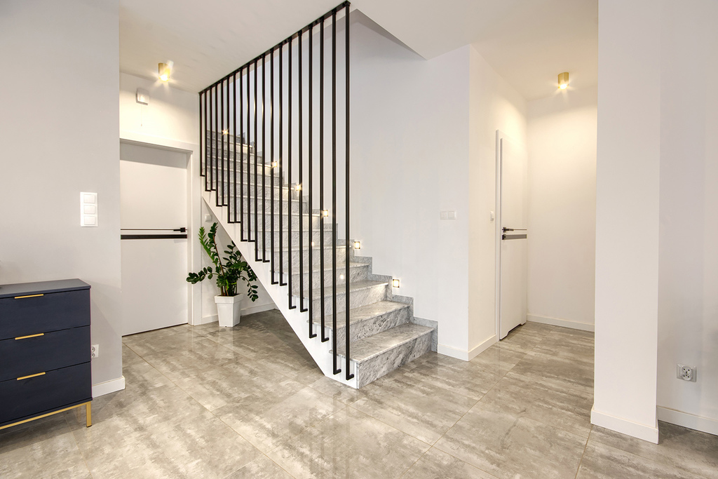 - hall + klatka schodowa (3,8 m2)